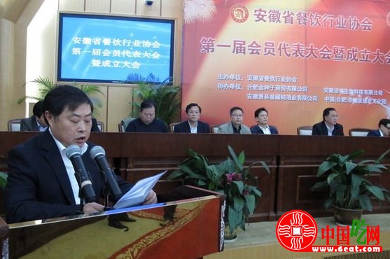 新当选的安徽省餐饮协会会长张学涛作第一届会员代表大会工作报告