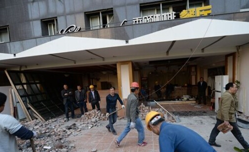 4月13日上午10点,韶山南路香颂国际小区内的香颂咖啡餐厅,开始进行违章部分的拆除。
