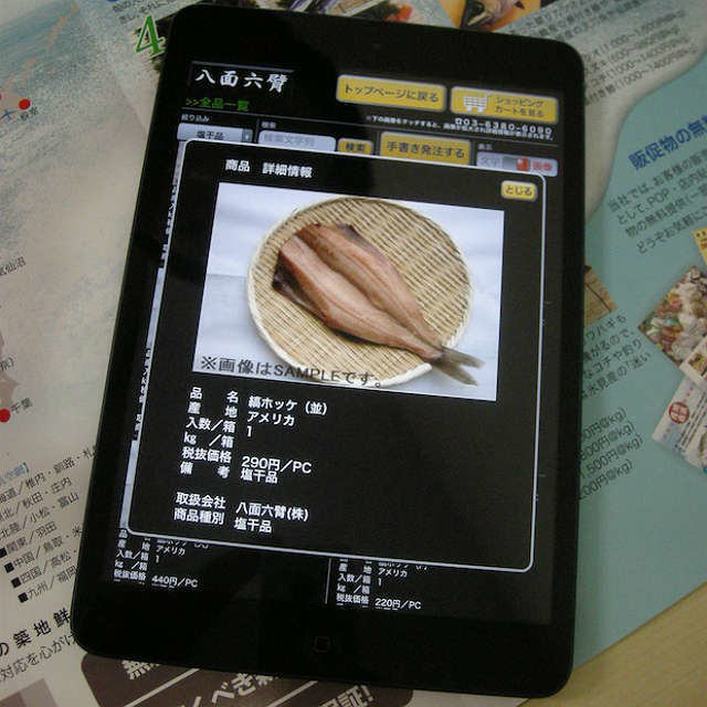 通过iPad,餐厅就可以直接从日本各地的鲜鱼产地订购海鲜食材,这样让海鲜交易变得省时省力,因为跳过产地的鱼市和分销商等中间环节,也提高了渔夫的收入。