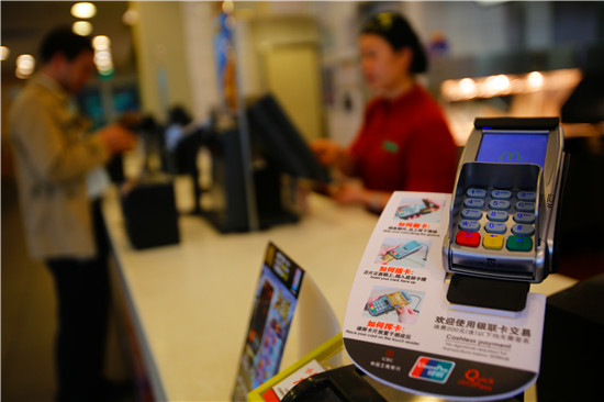 近日,在麦当劳南宁朝阳餐厅,经常光顾麦当劳的邹先生看到了柜台上的新变化——每个点餐台旁边都加装了一台银联刷卡机。购餐除了付现金外,还多了刷卡的选择。