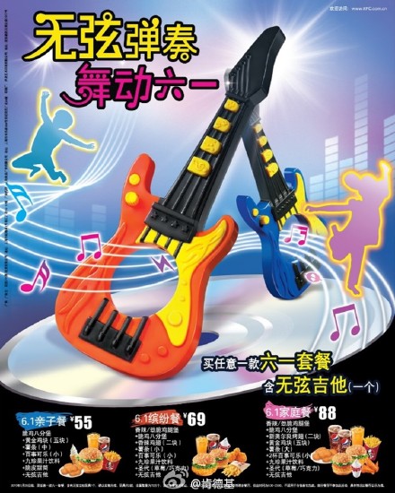 【中国吃网讯】六一儿童节到了!在这个大人小孩都喜欢的节日,快餐巨头都推出那些儿童节套餐活动呢?中国吃网小编了解到,麦当劳依然主打送玩具,儿童节消费开心乐园餐可以选择happy玩具或者凯蒂猫;肯德基这边除了送吉他玩具,还策划了彩绘、骑驴舞,让小朋友们一起玩;汉堡王也推出了儿童节套餐,礼物是英语画册和美食贴纸。一起来比较一下,哪个更吸引人?