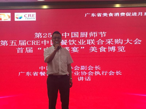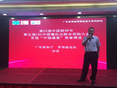 最后罗房枢处长发表讲话,表示商务厅领导对第25届中国厨师节落户广州与CRE2015中国餐饮展联合十分肯定,广东省一直是餐饮消费大省,展会的举办可带动促进内需,拉动消费,符合省商务厅开展广东省美食消费促进月系列活动要求;中国厨师节还可以在巩固传统美食的基础上同时实现美食的创新。商务厅对本届的展会必定会给予最大的支持。