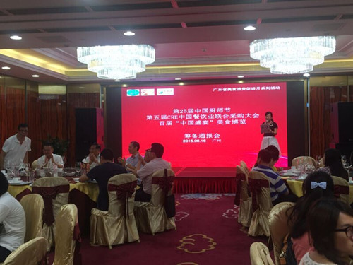 "第25届中国厨师节、第五届CRE中国餐饮业联合采购大会、首届‘中国盛宴’美食博览"得到了广东省商务厅、广东省旅游局、广东省农业厅、广东省食品药品监督管理局、广州市商务委员会支持,活动由中国烹饪协会主办,广东省餐饮服务行业协会承办,各地市餐饮、饮食、烹饪协(商)会联合承办,定于2015年9月10日-12日在广州·中国进出口交易会琶洲展馆举行。