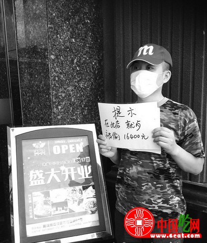 “味发现”餐厅丢失近两万 男子举牌吐槽