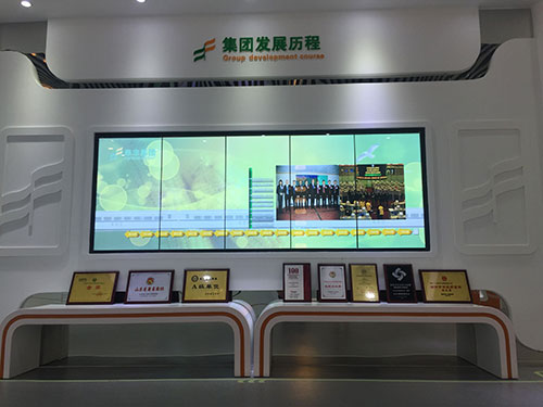 集团企业发展历程掠影——大屏幕远程参观技术、多媒体音响等的应用以及多种互动体验形式,使整个展览馆充满现代科技感。