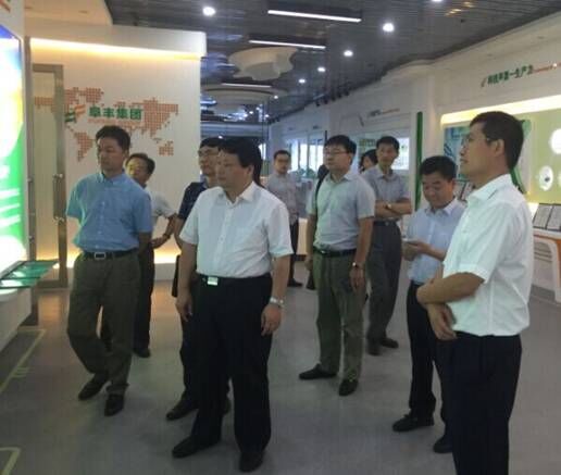 领导一行观看集团企业发展历程——自阜丰集团数字科技展览馆对外开放以来,已接待了众多省市级领导前来参观。