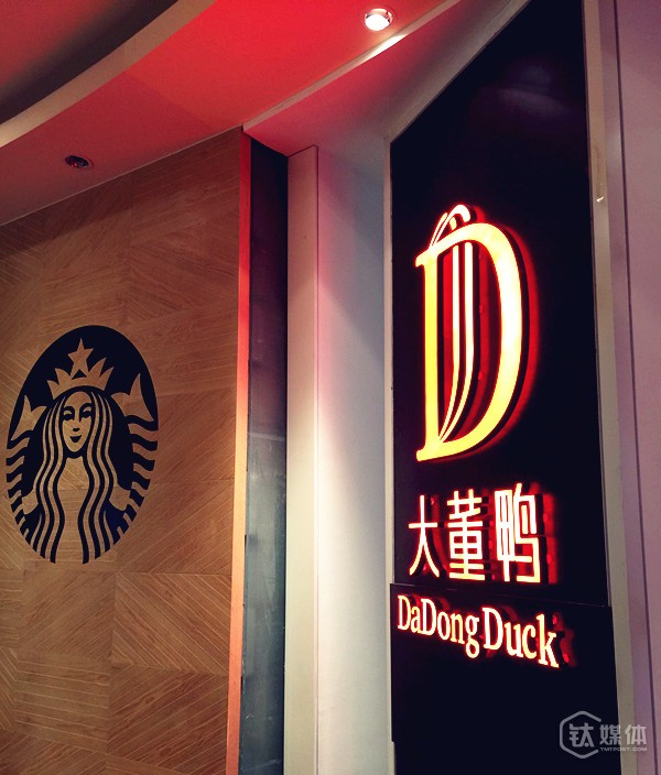 中式快餐"大董鸭"与洋品牌"星巴克"仅一墙之隔
