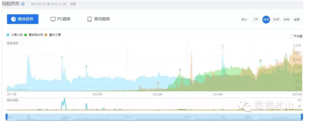 从百度指数我们可以看到,沙县小吃成名已久,最近5年保持不温不火相对平稳的状态。而黄焖鸡米饭和重庆小面从13年开始以火箭般的速度蹿升,风头已完全盖过沙县小吃。