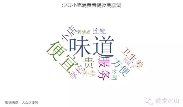 根据用户评论,剔除和食物相关的词汇,统计出了沙县小吃消费者提及高频词。当我看到拉肚子,卫生差等词汇之后犹如找到了知音,不禁热泪盈眶。从这些高频词中,我们貌似可以看到沙县小吃衰落的一些端倪,事不宜迟,赶紧先罗列出来,细细考究一番。