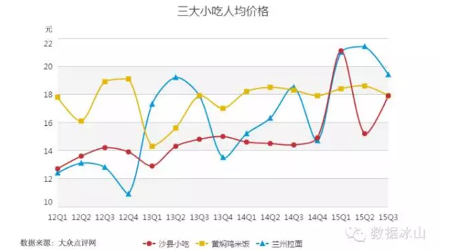 可以看到,黄焖鸡米饭价格基本维持不变,而沙县小吃的价格这几年在不断走高,今年已经追平了黄焖鸡米饭(这从另外一个侧面解释了黄焖鸡米饭火爆的原因),作为民工之友,原本占据优势的价格因素现在也已经荡然无存。
