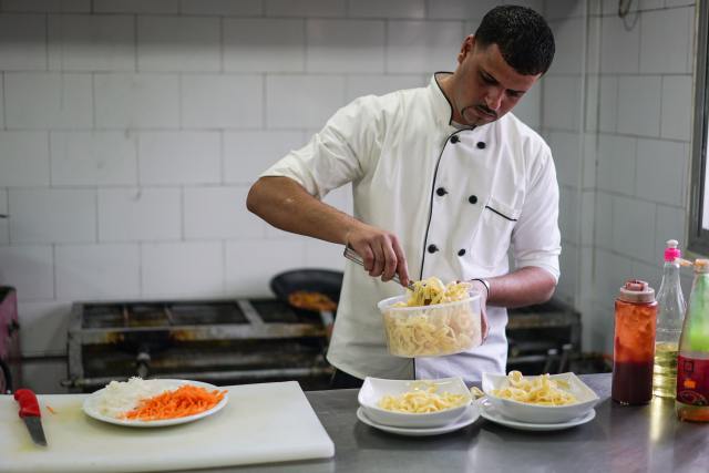 加沙人阿卜杜拉·塞卡拉第一次来卡扎米扎餐馆品尝中餐就爱上了这里,对菜肴的色香味赞不绝口。"下次我一定会叫上朋友来,也让他们感受一下用筷子吃饭的感觉。"