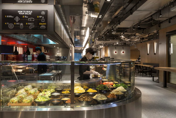 点单柜台是一组透明柜,消费者可以直观地看到各种食材。