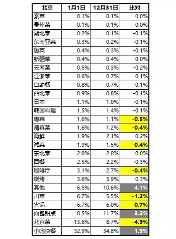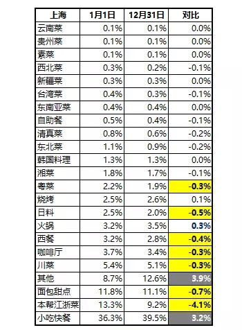 以下数据为2015年1月1日和2015年12月31日,大众点评公开数据,在统计时间内可能发生数据实时轻微变动。