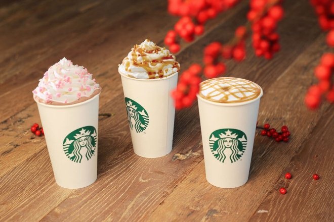 在饮品方面,星巴克今年推出了 3 款新年特饮。不同于上面部分要到2月初才上架销售的合作款,这三款包括心愿曲奇拿铁、福满栗香玛奇朵、如意桃花拿铁在上个月 29 日已经出现在了各门店,但只有心愿曲奇才是首次亮相的新品。