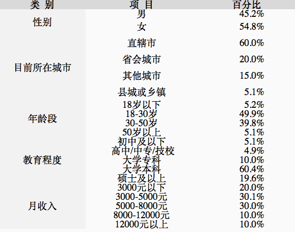 值得一提的是,本次调查18-50岁受访者占89.8%,本科以上学历的受访者占80%,这两个数字一方面是充分考虑到当前市场的消费主力,以具有较高学历的上班族为主。另一方面也与本次调查的调查方式为网络调查,渠道相对单一有关。