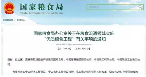 通知中称:初步定于4月底5月初开展“优质粮食工程”2017年度重点支持省份竞争性评审工作;加入示范工程的企业资金申报材料,将上报给财政部经建司和国家粮食局科学研究院。